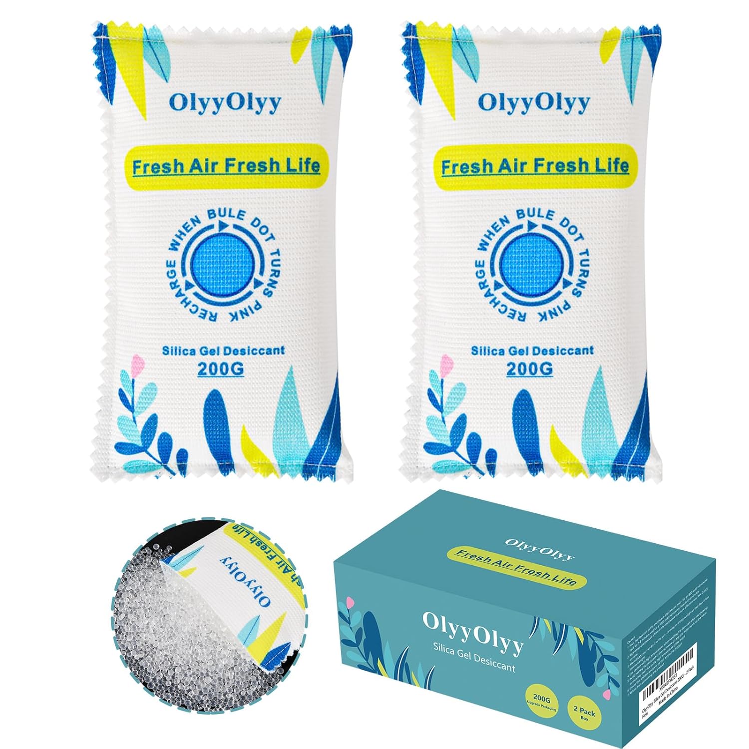 Quickly Moisture Absorption:Our reusable silica gel packets have excellent moisture absorption for small spaces and are contained in breathable polyester fabric to keep your belongings dry and secure, even in humid conditions, providing full protection for your family and loved ones. Quickly activation & Reusable Our dehumidifier bag contains a blue humidity indicator that turns pink once it has absorbed sufficient moisture. To reuse, simply heat in the microwave for 5-8 minutes or place in the sun for 1-2 days until it returns to blue. The time for color change may vary depending on the environment, lasting up to one or two months. Multi-Purpose Protection: Our Small Dehumidifier Is Ideal For Safeguarding Various Items Like Storage Containers, Tool Cases, Cameras, Paperwork, Clothing, Pictures, And Electronic Devices. It Is Also Great For 3d printer filament,Use In Vehicles, Rv Dehumidifier For Inside Camper, Wardrobes, Safes, Kitchens, Bathrooms, Gun Safe Accessories, And Other Samll Spaces. Safe & Fragrance-Free Design: Crafted From Food-Safe Silica Gel Humidity Packs, Our Moisture Absorbers For Closet Is Devoid Of Dangerous Chemicals, Rendering It Suitable For Use In Your Household And With Your Possessions. It Is Able To Soak Up Moisture Without Releasing Any Harmful Substances, Promoting A Safe Atmosphere For Your Belongings While Also Decreasing The Need For Single-Use Items, Ultimately Lessening The Environmental Footprint. Long-Lasting & Aesthetic Design: Created With A Two-Layer Design To Prevent Leaks, Our Small Dehumidifier Are Constructed To Have A Long Lifespan. Additionally, We Provide Double Packaging To Maintain The Freshness Of Unused Silica Packets. We Emphasize The Importance Of Combining Utility With Style In Our Desiccant Packets, Drawing Inspiration From The Beauty Of Nature To Create A Sleek And Modern Design.