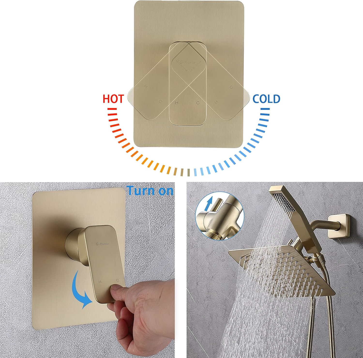 COMPLETE SHOWER FAUCET SET: This is a complete shower faucet set. We provide all accessories. You do not need to purchase other things to complete the installation. The pressured-balanced rough-in valve is also included, no need to purchase separately. More convenient for you to modify the bathroom. 2 IN 1 DUAL SHOWER SET WITH SMOOTH CONTROL: You can switch freely from handheld wand to rain shower head or keep both on. Different showering ways bring you different experiences. When two shower heads discharge water at the same time, the water pressure is halved. ALL METAL CONSTRUCTION: The pressure balanced rough-in valve and the 3-way diverter are made of SOLID BRASS. Other parts such as two shower heads, shower arm, hose, flanges, temperature control knob are all made of metal. NO PLASTIC! TANGLE-FREE HOSE AND SMOOTH CONTROL KNOBS: The hose is flexible and no tangling. Can be stretched from 70 to 75. The temperature control knob has a smooth control. You will not hear strange noises when you adjust the knob. Brand Services: We will provide you with a simple and practical shower arm to fix your shower angle issues. Customer service is always online.