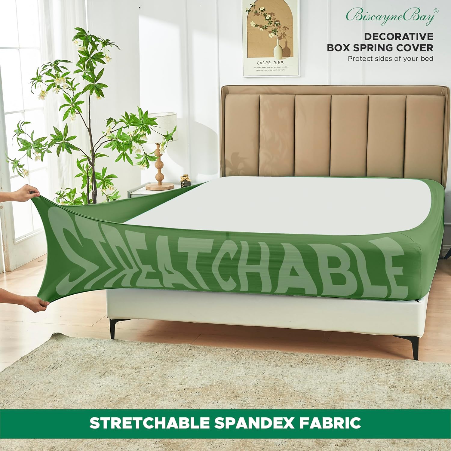 Title: Biscaynebay Decorative Box Spring Cover Queen Size, Sage Luxurious Jersey Knitting Stretchy Wrap Around 4 Sides Bed Skirt for Home/Hotels, Easy Fit Wrinkle & Fade Free Machine Washable