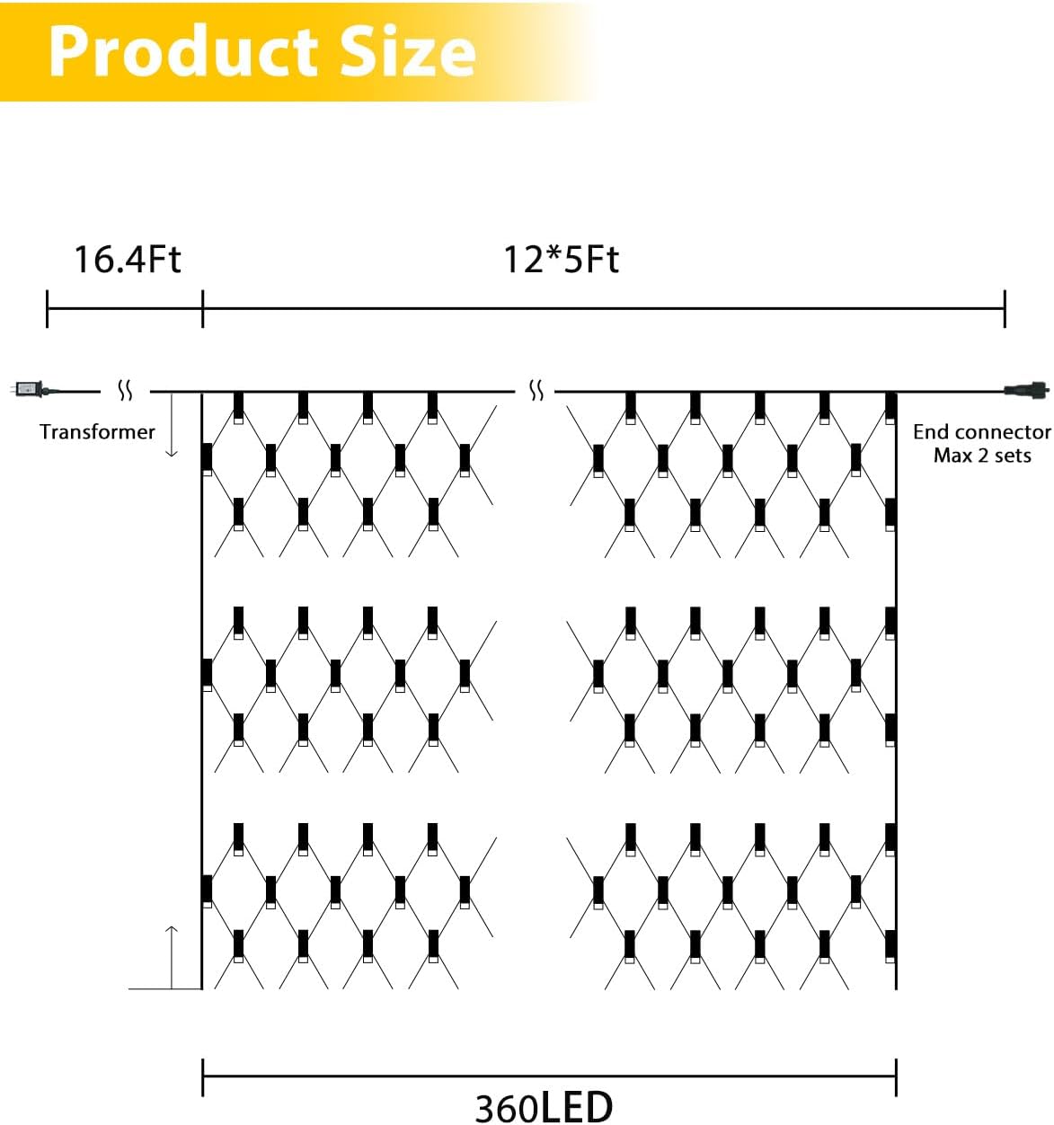 Versatile 8 Modes and Timer Function: Offers 8 different lighting modes to suit various occasions, moods, and holidays. Can be timed to stay on for 6 hours, making it convenient for everyday use. High Quality and Safe: 360 solid construction plastic LED bulbs with UL 588 certification and rated low voltage. Perfect for Indoor and Outdoor Decorations: Ideal for decorating trees, bushes, patios, balconies, bedrooms, windows, and more. Can create a cozy and festive atmosphere during festivals, parties, weddings, and events. Extendable and Reliable: Designed with a Male and Female Safe Plug, enabling you to connect up to 2 sets light chains. IP44 rated wire and bulbs that can withstand various weather conditions. Must-have Christmas Net Lights for Bushes: These net lights for bushes are an asset to your holiday decor collection. They're efficient, beautiful and are the perfect option for those looking for bush Christmas lights outdoor net or net Christmas lights for bushes. Get your hands on these LED net lights for bushes for the ultimate Christmas decor!