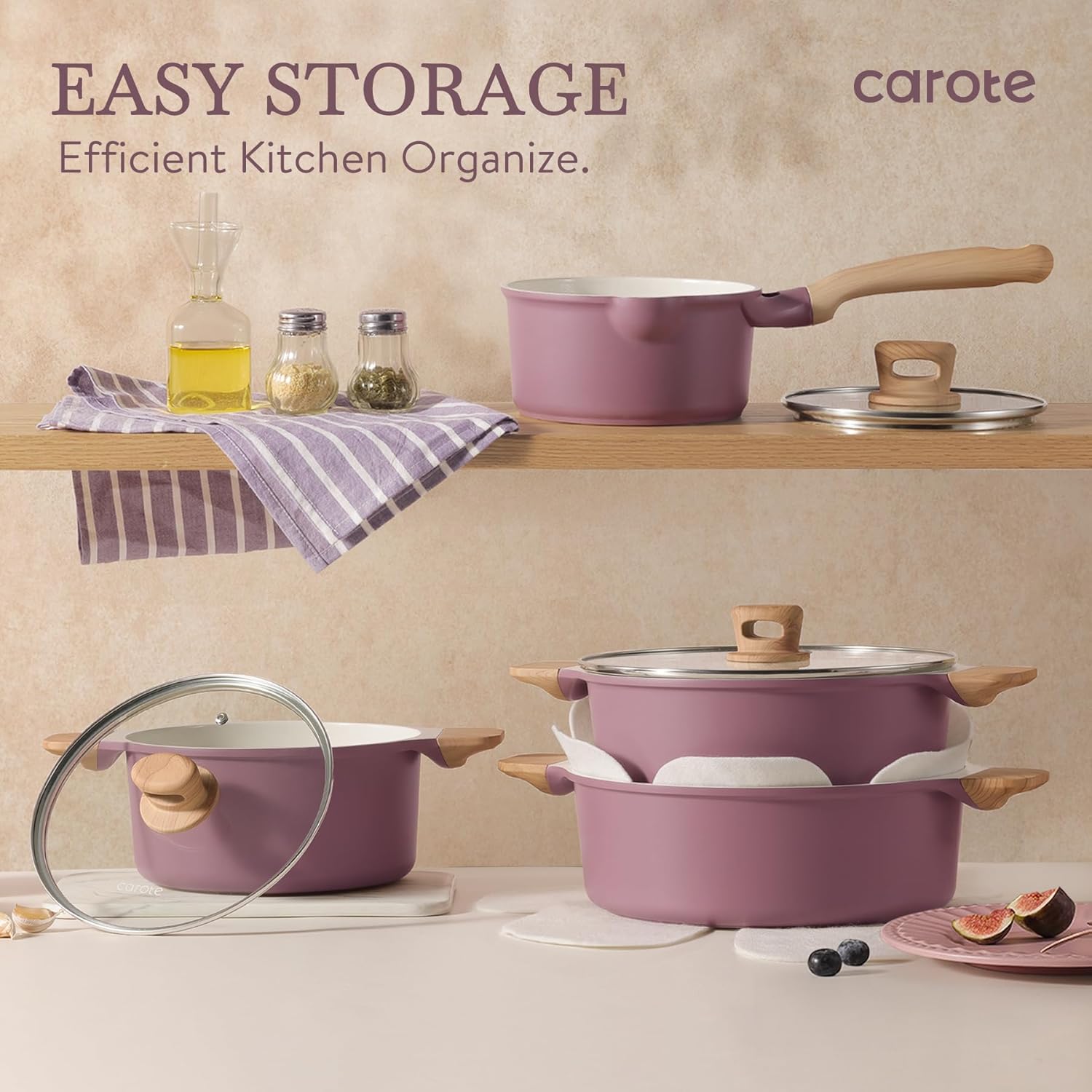 Title: CAROTE 12 Pcs Nonstick Cookware Set, Purple