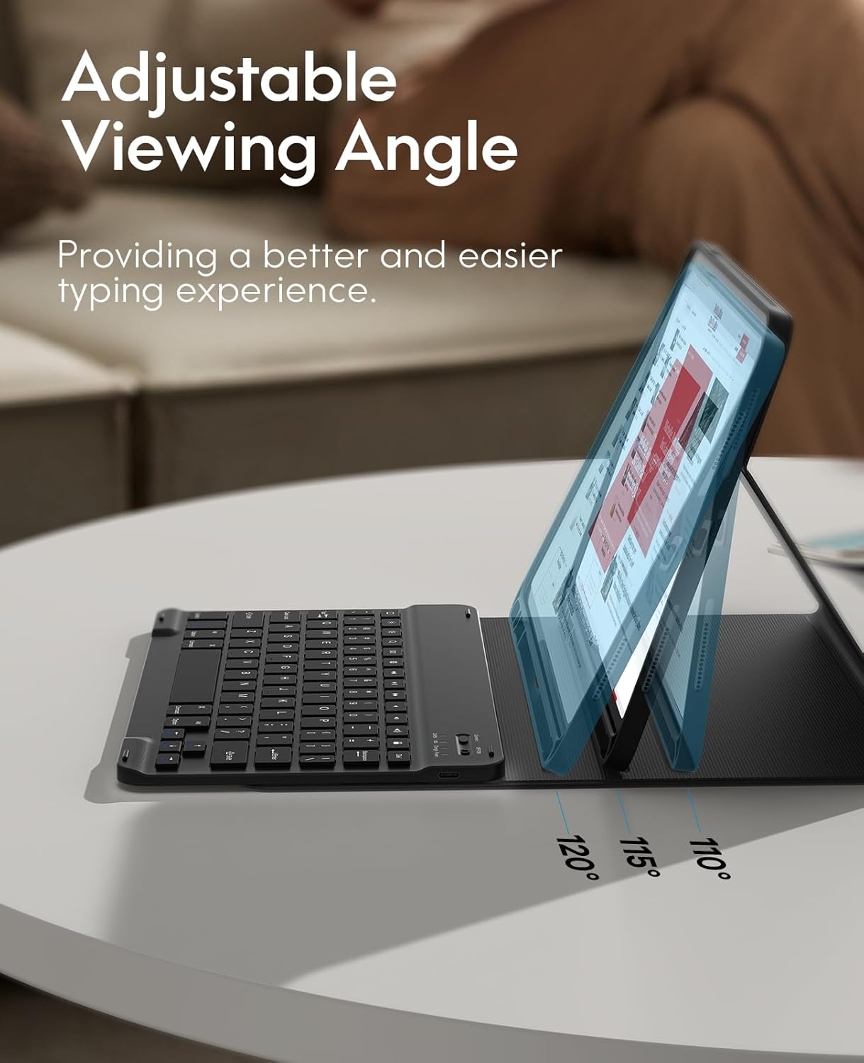 Compatibility: Not compatible with iPad Pro 11 inch M4 2024. Only compatible with iPad Air 11-inch M3 2025 (A3266/A3267/A3270), for iPad Air 11 inch M2 2024 (A2902/A2903/A2904), for iPad Pro 11 inch 4th Gen 2022 (A2759/A2759/A2761/A2762), for iPad Pro 11 inch 3rd Gen 2021 (A2377/A2301/A2459/A2460), for iPad Pro 11 2nd Gen 2020 (A2228/A2068/A2230/A2231), for iPad Pro 11 1st Gen 2018 (A1980/A2013/A1934), for iPad Air 5th Gen 2022 (A2588/A2589/A2591), for iPad Air 4th Gen 2020 (A2072/A2316/A2324/A2325). NOT including Apple Pencil or tablet. Magnetic Removable Keyboard: Remove the magnetic keyboard from the inside, adjust the cover with iPad in a degree to transform your tablet into a highly performant, easy-use laptop or your favorite book in less than a second. QWERTY Layout with short-cut keys, including Volume, Music Control, Brightness, etc, gives you a skin-like touch feeling and provides all-day comfort for work and entertainment. Multiple Stand Angles For Comfortable Use: Our keyboard case is compatible with the tablet Pro 11-inch, using a flip magnet separate design with built-in three different angles of standing on the bottom of the cover to ensure a comfortable viewing angle - Typing, Reading, Gaming - giving you amazing versatility. Easily adjusts to whatever comfortable angle suits you best. Perfect for working, writing, or watching videos at work, school, travel, and home. Premium Protection: This keyboard tablet case comes with an anti-slide design and offers 360 full protection against scratches, bumps or dents, protecting your tablet from all sorts of dropping accidents, also against fingerprints, shocks, scratches and dust. Precise cutout allows full access to all ports, sensors, speakers, microphones and cameras. Whether you re a blogger, writer, professional or student, our keyboard case offers you a smart, stylish and practical solution to your needs. Long Life Battery & Notice: Built-in Rechargeable battery could extend the battery life, 2-3 hours full charge, work for more than 80 hours, stand by for 120 days. Notice: The keyboard will enter sleep mode if it doesn't work for 10 minutes, and it will disconnect from your tablet. It will wake up and connect to your tablet again when pressing any key.