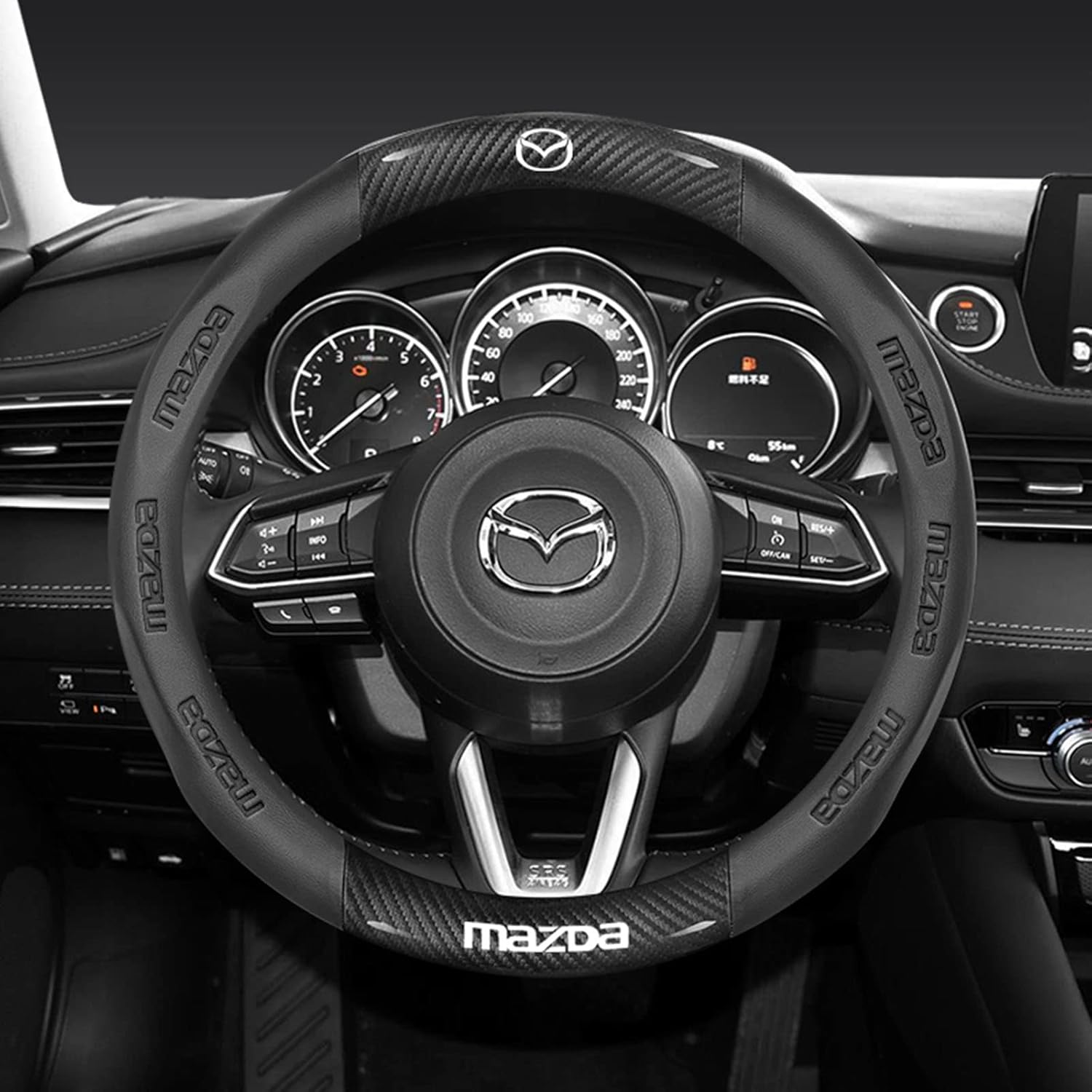 Title: Custom-Fit for Mazda Steering Wheel Cover, Fusion Carbon Fiber Premium Leather Car Steering Wheel Cover with Logo, Non-Slip, Breathable, for Mazda Accessories (MZD-New)