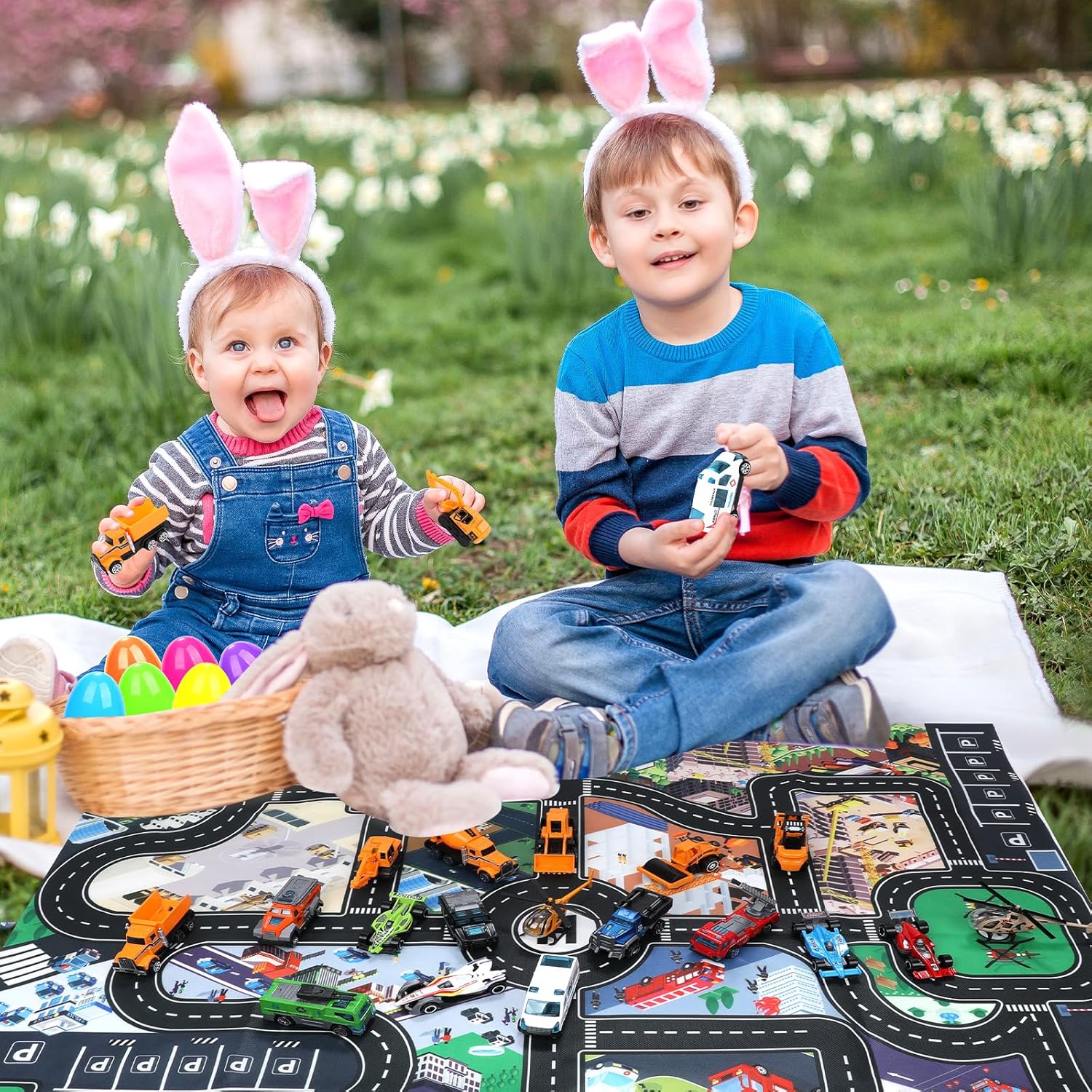 Title: Easter Basket Stuffers Kids Toddlers - 18 PCS Easter Egg Fillers Vehicle Toys with Plastic Easter Eggs, Easter Basket Fillers Egg Hunt Party Favors Easter Gifts for Kids Boys Girls