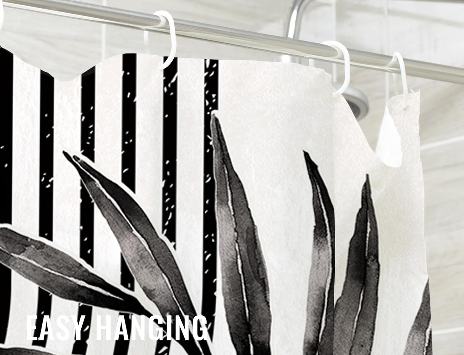 STANDARD SIZE: Measuring 72 x 72 inches, this shower curtain fits most standard shower stalls and bathtubs. STRONG MATERIAL: Made from durable and eco-friendly PEVA material that is odorless and long-lasting. EASY INSTALLATION: Comes with 12 plastic hooks for effortless installation and sliding. WATERPROOF & QUICK-DRYING: Coated with a waterproof layer that makes it splash-resistant and quick-drying. EASY TO CLEAN: Wipe down the shower curtain with a damp cloth for easy maintenance and a fresh look.