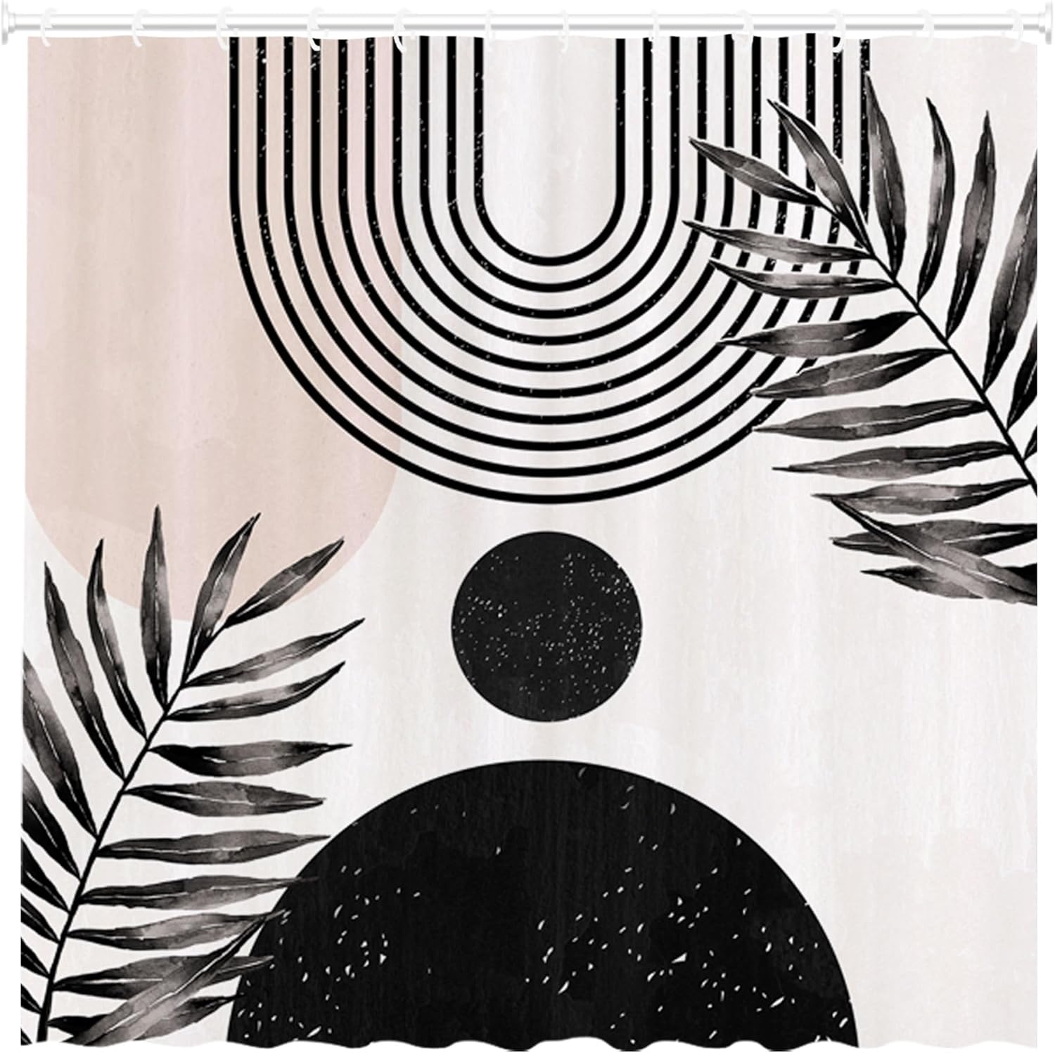 Title: Funnytree 72x72 Inch Abstract Black Mid Century Boho Arch Sun Beige Modern Minimalistic Home Bathroom Bathtubs Decoration Plastic Waterproof Shower Curtain with 12 Hooks
