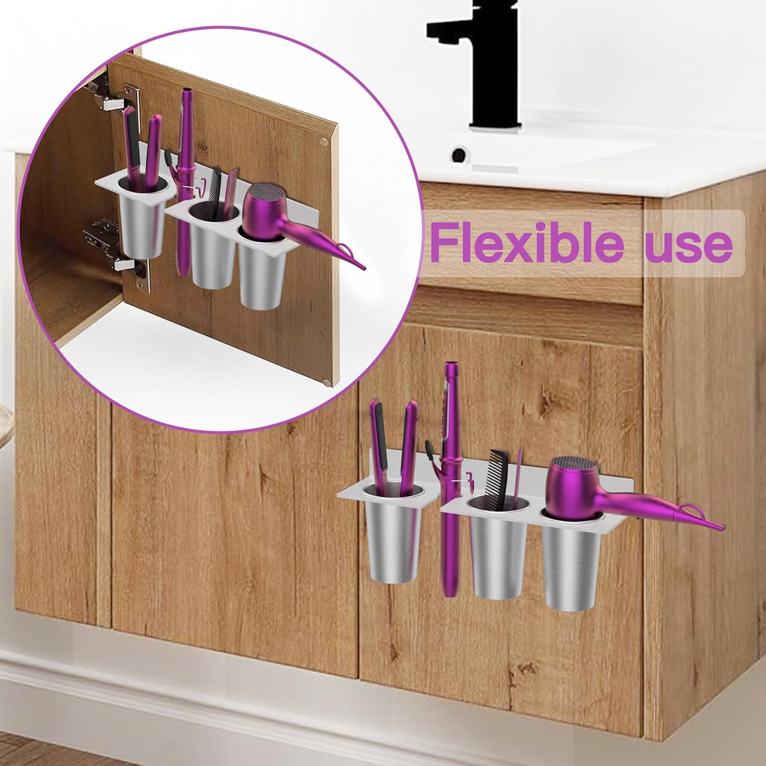 Hair Dryer Holder with 3 Stainless Steel Cups