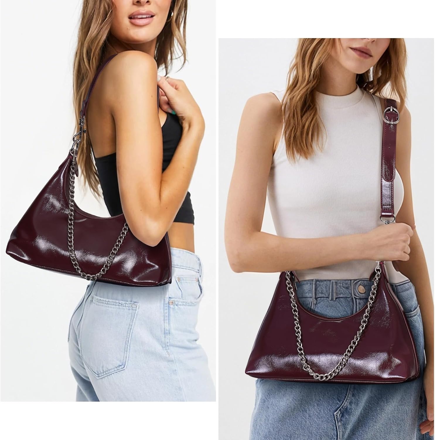 Title: JQWSVE Crescent Shoulder Bags for Women Y2k Purse Hobo Handbag Trendy Glossy Leather Crossbody Bag with Adjustable Strap