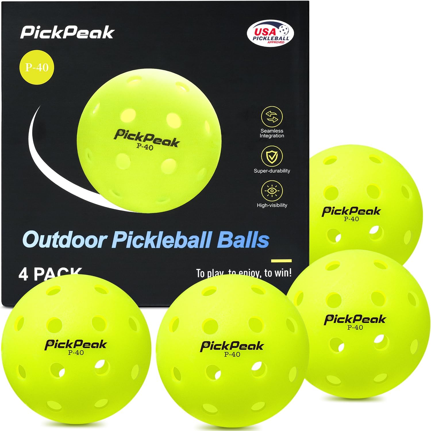 Title: Outdoor Pickleball Balls Usapa Approved 4 Pack|12 Pack 40 Holes Competition Pickle Balls for Tournament Play | Crack Resistant Pickleball for Beginner Intermediate Pro Player