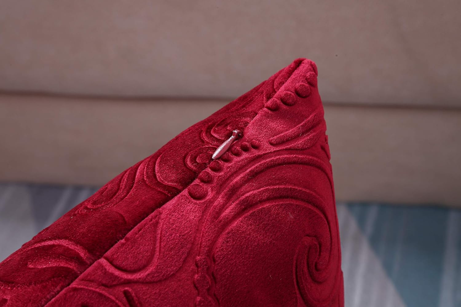 TangDepot Heavy Velvet Embossing Throw Pillow Cover, Classis Floral Anaglyph Velvet Fabric, Decorative Pillow Cover, Indoor/Outdoor Pillows Shell, Cushion Cover - (18" x 18", C07 Deep Red)